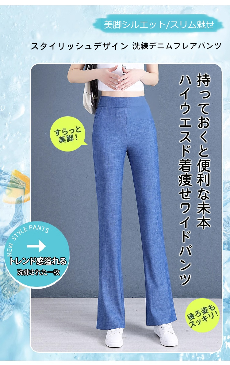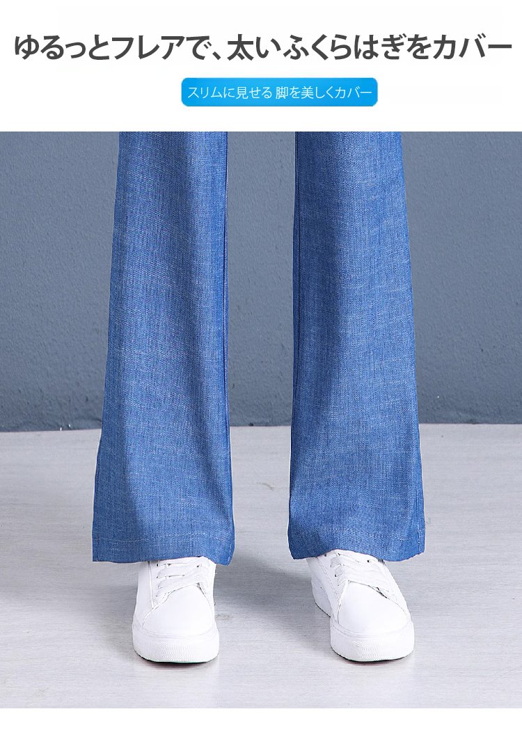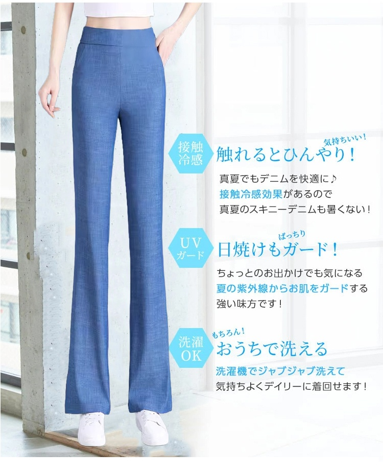 接触冷感薄手ジーンズフレアパンツ