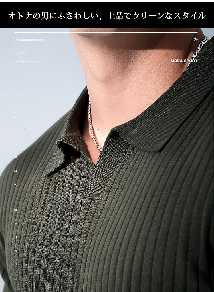 メンズリブ編みスキッパーポロシャツ